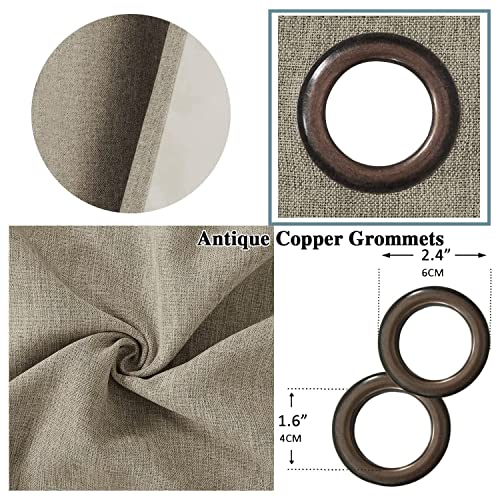 - 2 PANELS SET: Sold pair in package, contains two(2) faux linen panels. Panel measures 52 inches wide by 96 inches long, set measures 104 inches wide by 96 inches long, each window curtain constructed 8 gorgeous copper metal grommets, inner rim of grommet is 1 5/8 inch which fit the rod up to 1 inch, slides smoothly back and forth